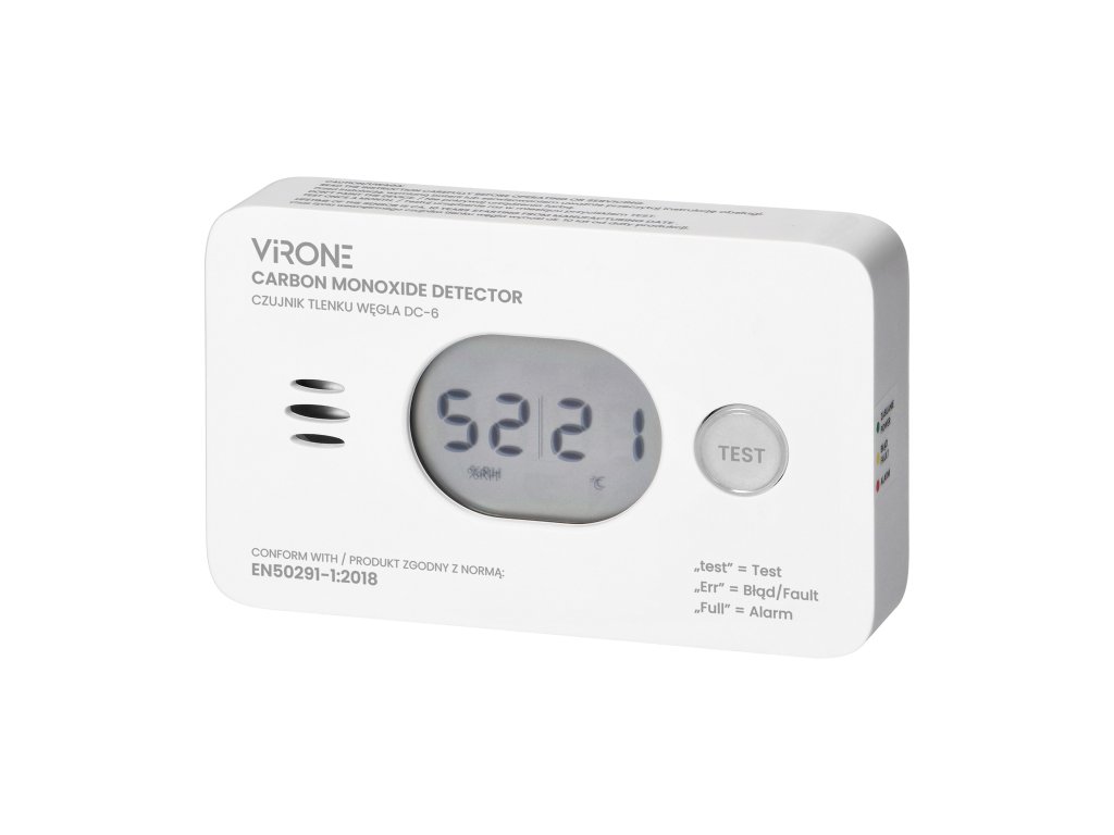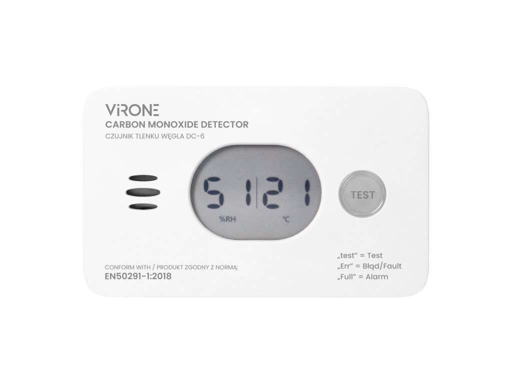 - Varnostni zaslon: LCD zaslon prikazuje trenutno koncentracijo ogljikovega monoksida, kar omogoča nenehno spremljanje kakovosti zraka v prostoru.