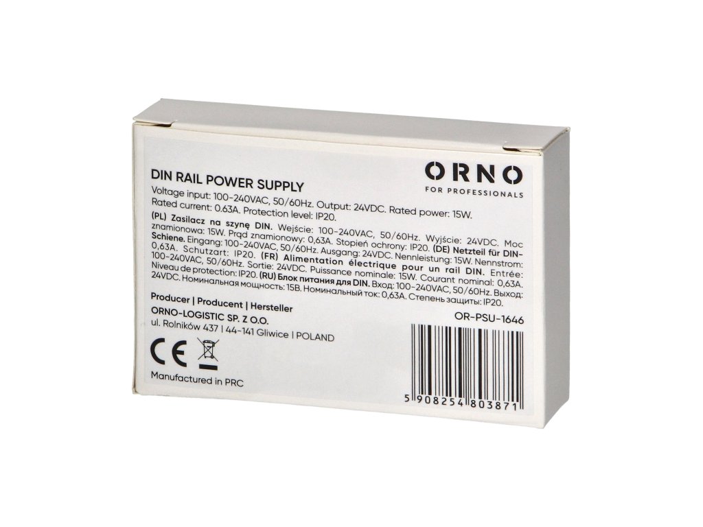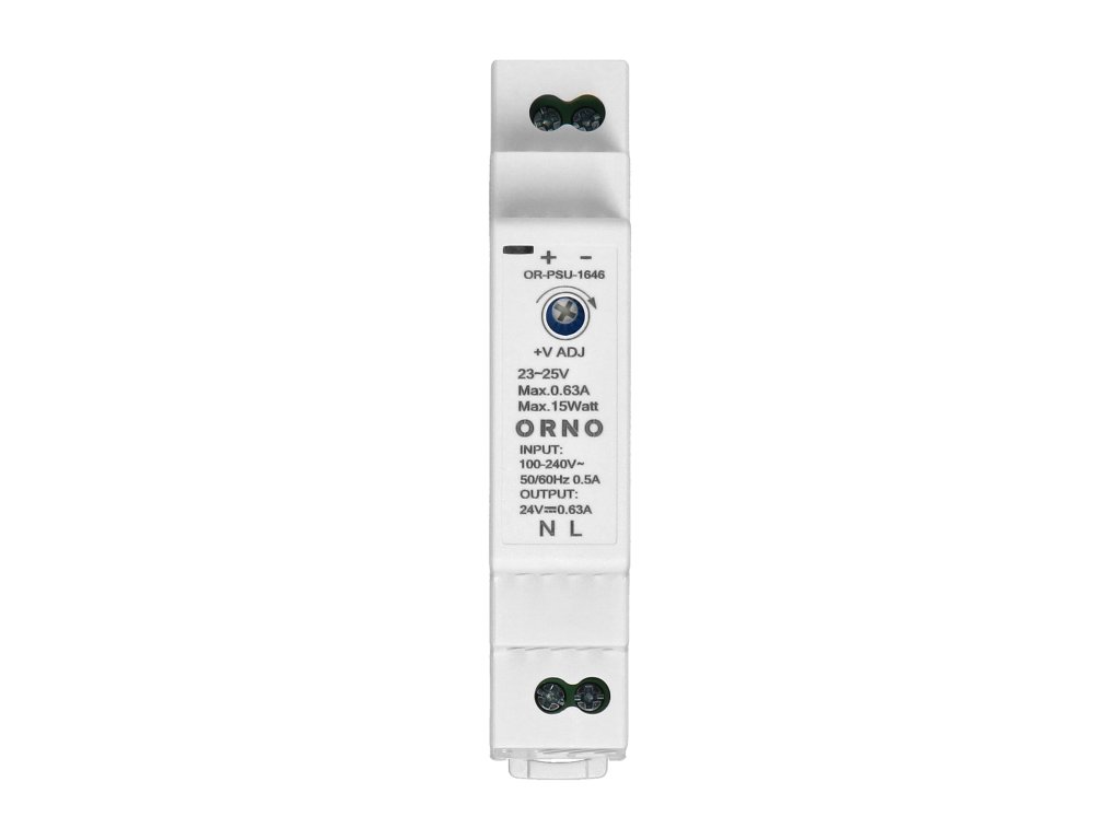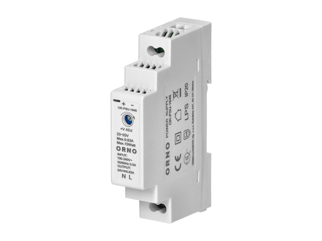 Visoko učinkovito in zanesljivo napajanje za DIN letev z največjo močjo 15 W. obremenitev in izhodna napetost 24V DC, ki jo je mogoče nastaviti. Razvito je bilo za montažo na DIN letev in se lahko uporablja v številnih aplikacijah, npr. industrijske aplikacije, nizkonapetostne instalacije, kot so CCTV ali alarmni sistemi. Ta napajalni adapter vključuje: zaščito pred preobremenitvijo, zaščito pred prenapetostjo in zaščito pred prenapetostjo. Vgrajena dioda označuje aktivacijo naprave.