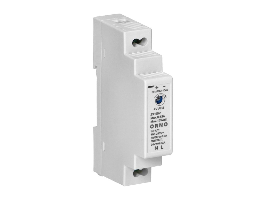 24V napajalnik za montažo na DIN letev DC, 0,63A, 15W