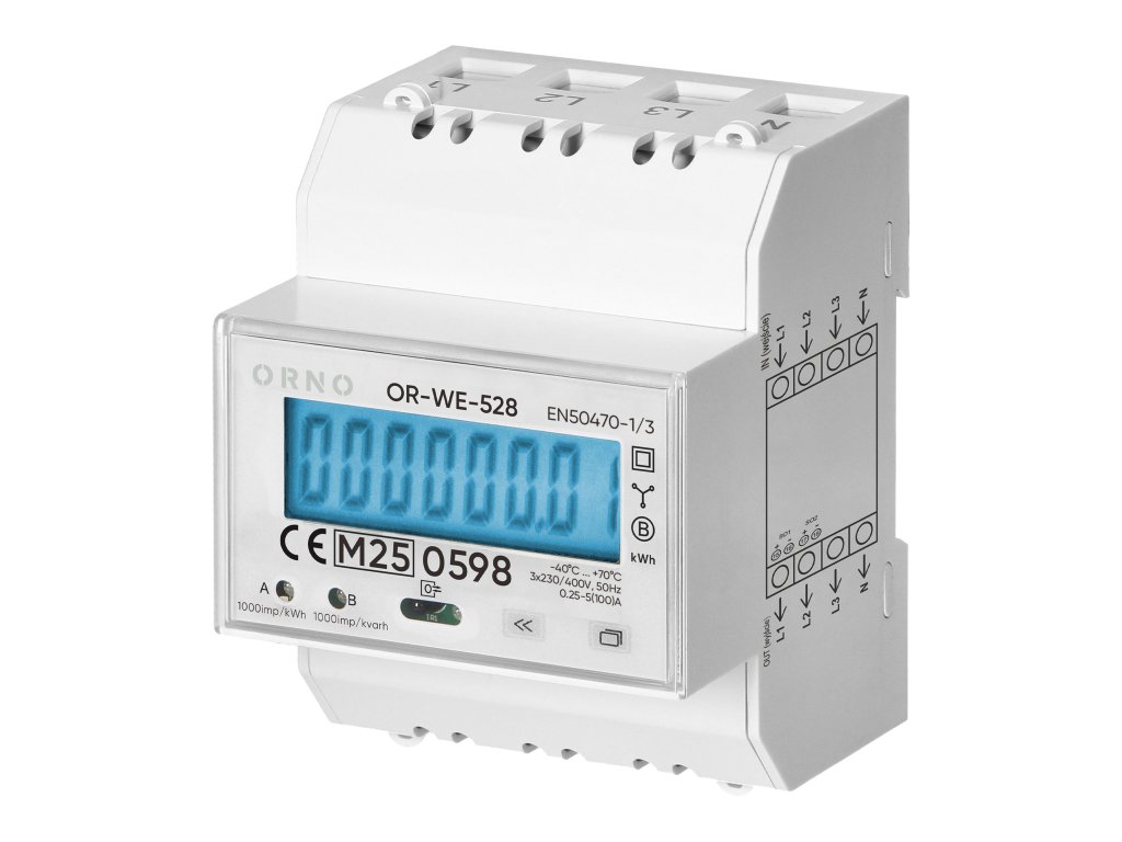 Trofazni merilnik energije z največjim tokom 100A je sodobna merilna naprava, zasnovana za natančno spremljanje porabe električne energije v trofaznih instalacijah. Merilnik se lahko uporablja v trgovinskih, industrijskih in domačih aplikacijah, kjer so potrebne natančne in zanesljive meritve.Naprava deluje z nazivno napetostjo 3x230/400V~ in frekvenco 50/60Hz, kar omogoča neposredne meritve energije brez potrebe po uporabi tokovnih transformatorjev. Naprava beleži aktivno, jalovo, porabljeno in oddano energijo. To omogoča celovito spremljanje energetskih tokov v obe smeri. Najmanjši merilni tok 0,25A zagotavlja visoko občutljivost naprave tudi pri nizki obremenitvi.