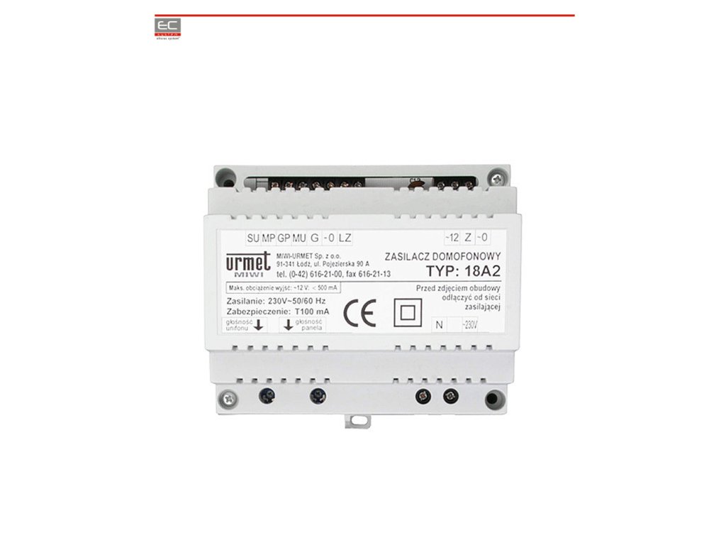 18A2podjetja Miwi-Urmet je prilagojen za montažo na DIN rail. Poleg tega je opremljen z okvirjem, ki pokriva priključke žic. To omogoča varno montažo napajalnika brez dodatne podpore. Napajalni viri za domofonske, interkom sistem, kot tudi video domofonske sisteme. Releji, namenjeni našim sistemom, omogočajo ustvarjanje sistemov z več vhodnimi paneli, več telefonov, ki so istočasno klicani ali videomonitorji itd. Napajalni viri so zelo pomembni, saj odločajo o funkcionalnosti našega domofona. Napajalnik ima vgrajen triak, s katerim se tok elektro-zapornice zapre na odseku panel - napajalnik, kar omogoča izogibanje padcu napetosti na povezavi napajalnik - telefon med odpiranjem elektro-zapornice. Vgrajen dvo-tonski generator omogoča hkratno klicanje enega ali dveh telefonov. Domofoni podjetja Miwi-Urmet uživajo veliko zaupanje po vsem svetu. Gre za visoko napredne domofonske sisteme najvišje kakovosti, ki omogočajo najvišjo kakovost uporabe. Poleg tega namestitev in uporaba nista zahtevni, kar jih dela za najuniverzalnejše domofone.