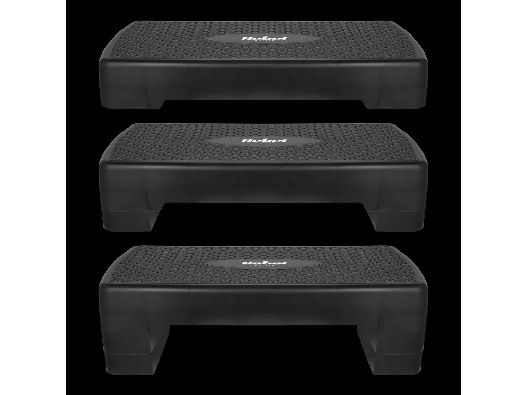 Aerobna in fitnes stopnica, 3 stopnje, 68 cm, črna, REBEL ACTIVE