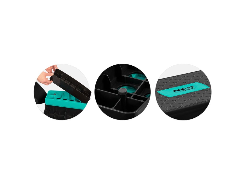 - možnost postavitve nog pod stopnico - kompaktno, enostavno za shranjevanje,
