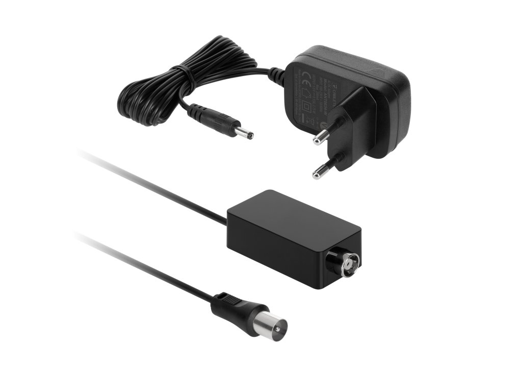 V kompletu: vodoodporna spojka, F konektor, ojačevalnik, napajalnik