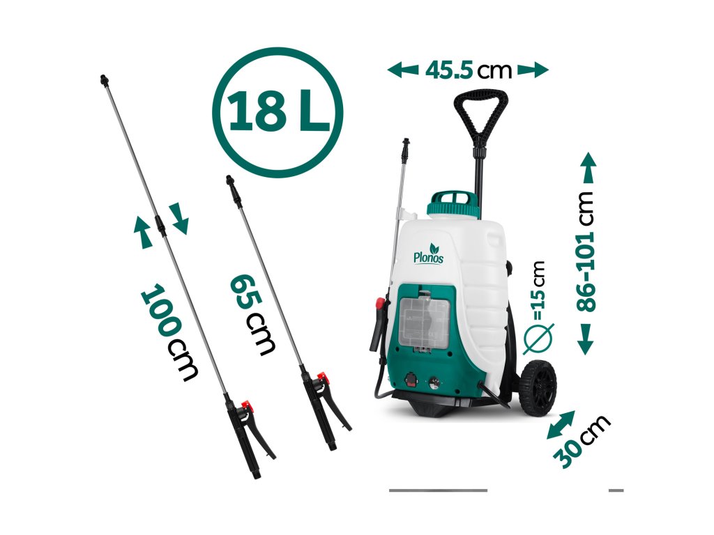 Prostornina 18 litrov: večji rezervoar je še posebej uporaben v velikih vrtovih ali na kmetijskih poljih.