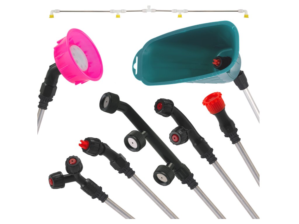 - Zeleni herbicidni pokrov s ploščato šobo: zasnovan za točkovno uničevanje plevela, omogoča natančno aplikacijo pripravka na neželene rastline in hkrati ščiti sosednje rastline pred naključnim škropljenjem.