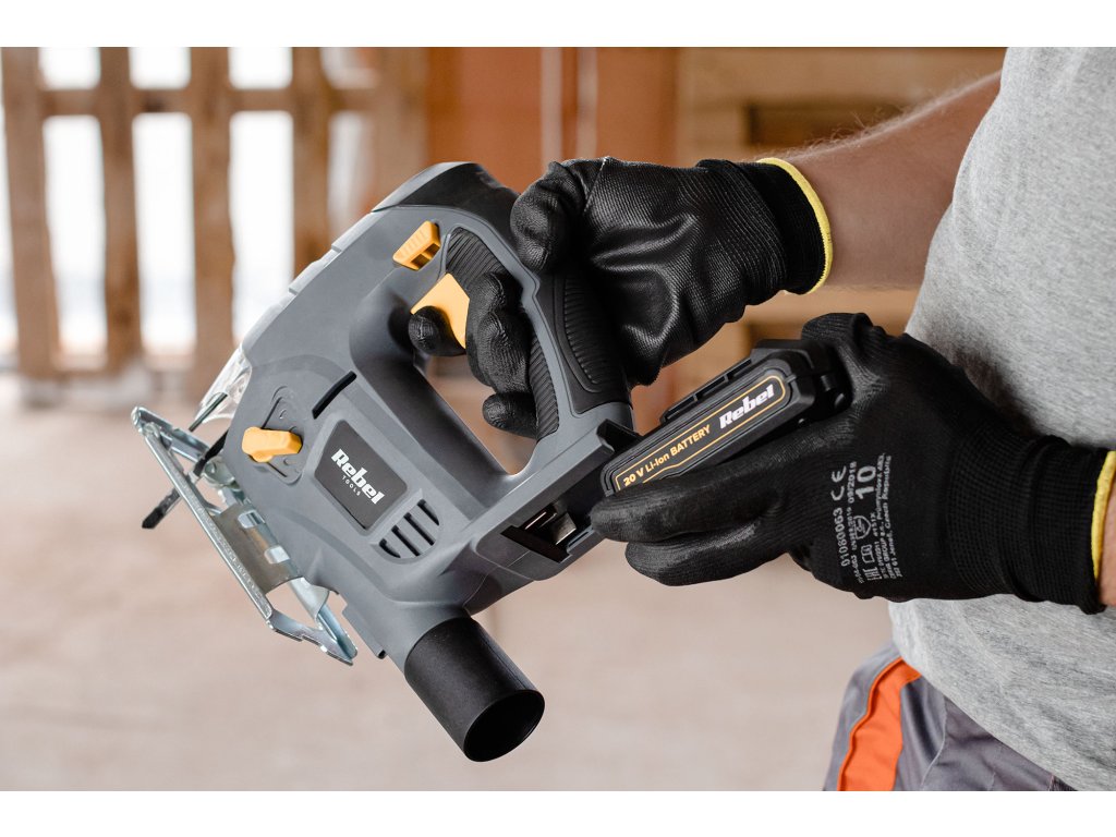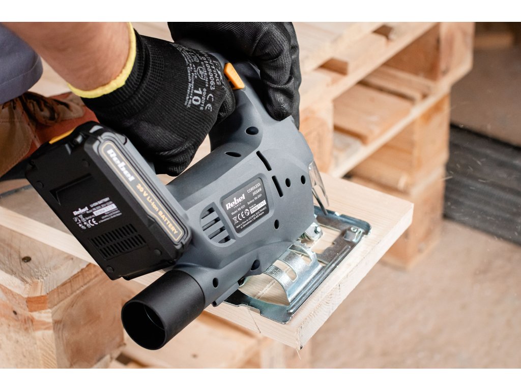 Glede na želeni učinek lahko uporabite eno od štirih nastavitev nihajnega gibanja žaginega lista. Poleg tega je vbodna žaga Rebel Tools opremljena s obojestransko nastavljivim kotom rezanja do 45 stopinj, zato je odlična tudi za bolj zahtevna dela, ki zahtevajo poševne reze. Da bi povečali udobje uporabe, ima naprava adapter za priklop na delavniški sesalnik, ki sesa prah in povečuje vidljivost obdelovanega materiala.