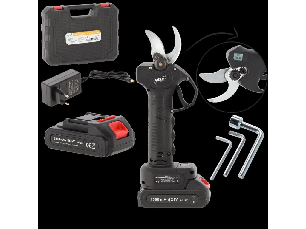 Akumulatorske škarje za veje omogočajo enostavno in udobno obrezovanje vejevja s debelino do 30 mm. Opremljene so z robustnimi rezili, kar omogoča enostavno rezanje z eno roko. Tanka zasnova in nizka teža zagotavljata, da je orodje udobno za uporabo in idealno za dolgotrajno delo v vrtu.