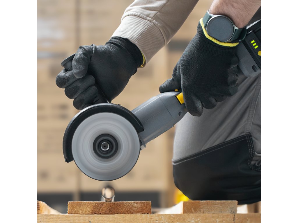 Z litij-ionsko baterijo 20 V, ki se napolni v samo 1-1,5 ure, boste vedno pripravljeni na delovanje. Disk premera 125 mm in hitrost vrtenja 7500 obr./min zagotavljata hitro in učinkovito rezanje ter brušenje, nizka teža 1,75 kg pa orodje naredi lahko in enostavno za uporabo, kar povečuje udobje in natančnost dela.