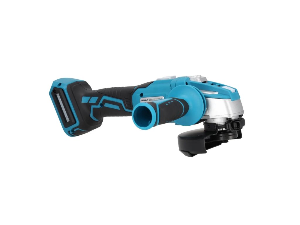 To orodje je namenjeno rezanju in brušenju. Brezkrtačni motor brusnega orodja ima hitrost 8500 vrt/min in je združljiv z diski velikosti 125 mm in 115 mm. Brusilnik je opremljen z varnostnim stikalom za prekinitev napajanja v primeru prevelikega pritiska orodja na obdelovanec, kar bi lahko povzročilo poškodbe ali pregrevanje orodja. Sistem za hitro menjavo rezila, dvopozicijski stranski ročaj, gumiran ročaj in podaljšan pokrov bistveno povečajo udobje pri delu s strojem. Ključ za menjavo rezila je nameščen v stranskem ročaju, tako da je pri menjavi rezila ali drugih nastavkov vedno na dosegu roke. Ohišje je izdelano iz najlona z jedrom iz steklenih vlaken, ki povečujejo odpornost na mehanske poškodbe in UV-sevanje. Ergonomija in udobje pri delu sta izboljšana zaradi nizke teže naprave in integriranega ročaja. Priporočena baterija za uporabo s kotnim brusilnikom je 4,0 Ah DED7034 ali 5,0 Ah DED7035.
