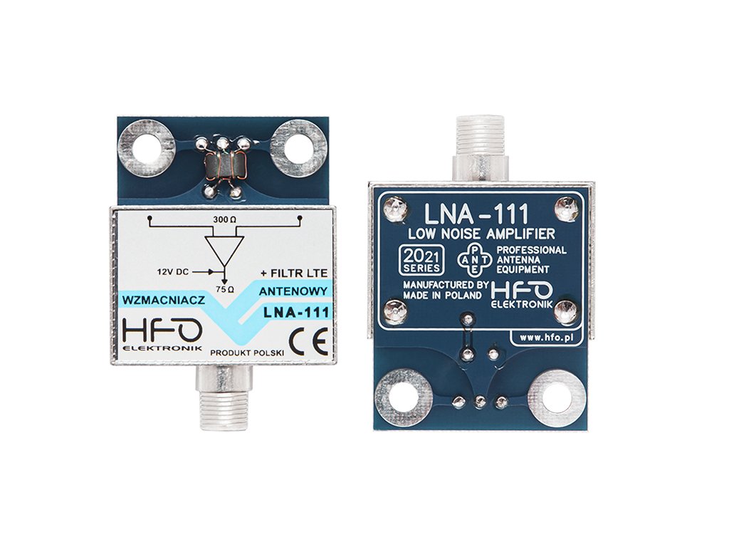 Ojačevalnik antene LNA-111-5G 14dB HFO ORIGINAL Predojačevalnik antene LNA-111 je namenjen ojačanju šibkih signalov zemeljske TV. Namenjen je za montažo neposredno na priključke antene v anteni škatli. Takšna rešitev zagotavlja ojačanje šibkih signalov že na izhodu iz antene, kar je še posebej pomembno pri nizkem razmerju signal / šum. Oklop ojačevalnika v litju znatno zmanjšuje občutljivost na motnje. Specifikacija:- Nivo ojačanja: 14dB
