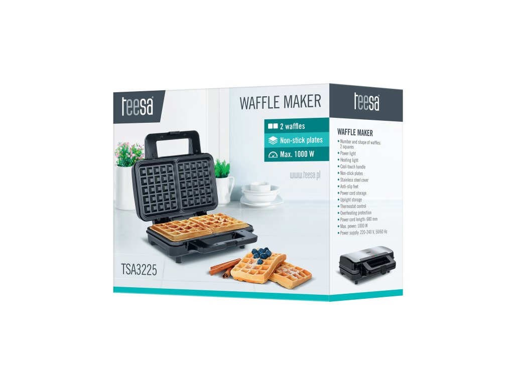 Presenetili so vas nepričakovani gostje ali pa želite osrečiti sebe in svoje bližnje? Zdaj se lahko odpoveste trgovinskim slaščicam in sami na hiter in enostaven način pripravite slastno sladico. To omogoča aparat za peko vafljev Teesa. Naprava omogoča pripravo dveh vafljev hkrati, zahvaljujoč moči 1000 W pa se segreje v hipu – to pomeni, da lahko zelo hitro pripravite veliko količino te priljubljene sladice.