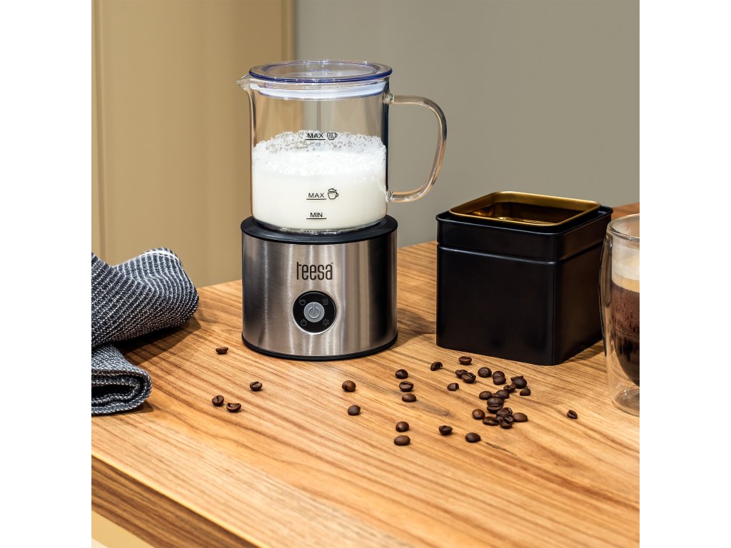 Ni boljše za dober začetek dneva kot aromatična kava z nežno, kremasto peno — še posebej, ko priprava traja le trenutek. Napitek za mleko Teesa AROMA F60, ki uporablja sodoben indukcijski sistem, v trenutku ustvari žametno peno za kavo, cappuccino, latte ali vročo čokolado.