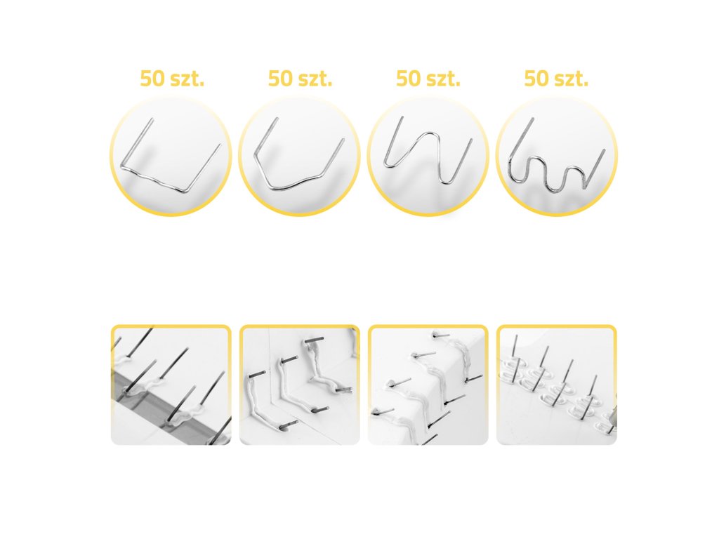 Do 4 vrste sponk v vsakem setu — SKUPAJ 200 sponk.