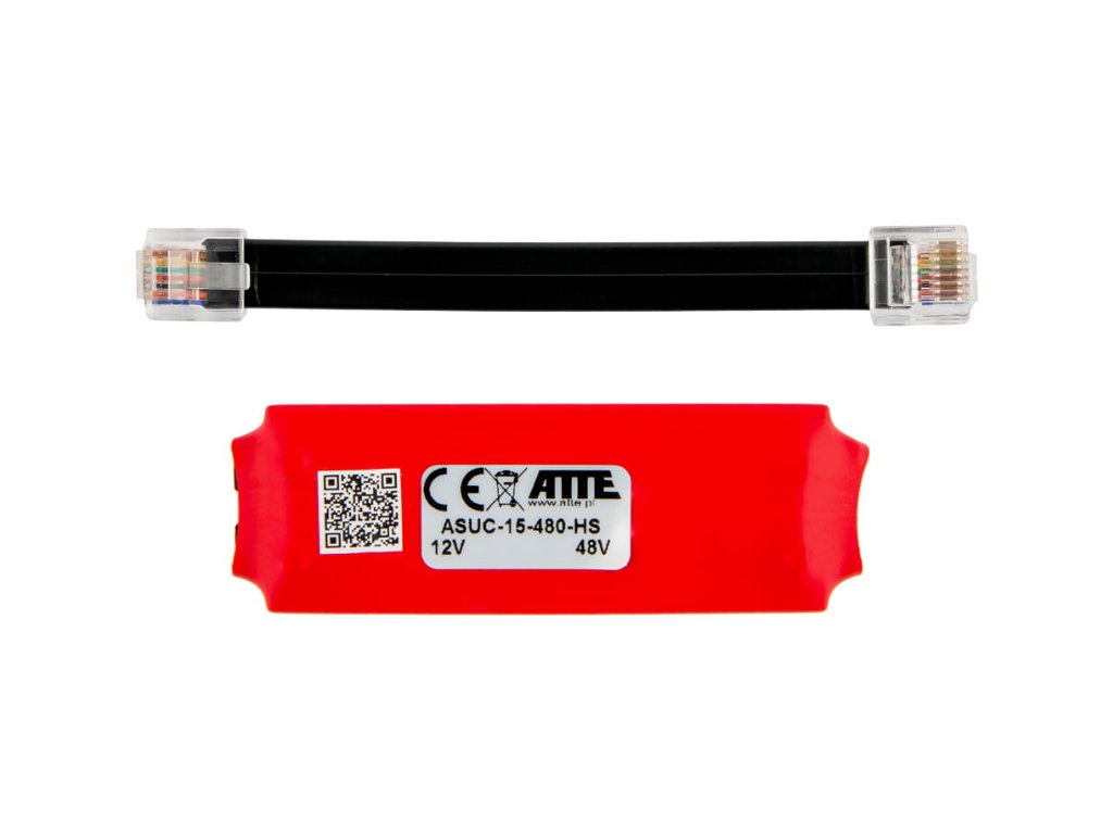 ASUC-15-480-HS je PoE adapter blagovne znamke Atte za povečanje napetosti. Tipična uporaba adapterja je generiranje PoE napetosti 48V DC iz napetosti, ki izhaja iz linije PoE PASSIVE 12V DC ali 24V DC. Ohišje v različici HS je rešitev, ki zagotavlja izolacijo in majhne dimenzije naprave.