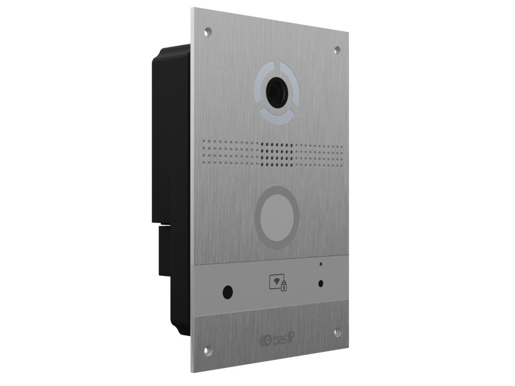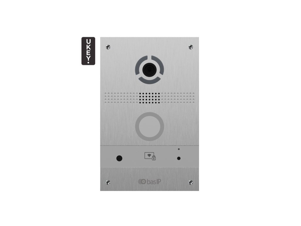 Zunanja enota AV-08FB blagovne znamke BasIP je model, namenjen namestitvi videoklica v IP tehnologiji. Panel ima 1 piezoelektrični gumb za klic in vgrajeno kamero z ločljivostjo FullHD z funkcijo prepoznave obraza. Napratava je opremljena z dostopno čitalnico v standardu Mifare in Unique. AV-08FB podpira tudi avtorsko rešitev blagovne znamke BasIP- sistem UKEY - ki omogoča avtorizacijo dostopa preko mobilnih tehnologij; QR kod, NFC in Bluetooth BLE.