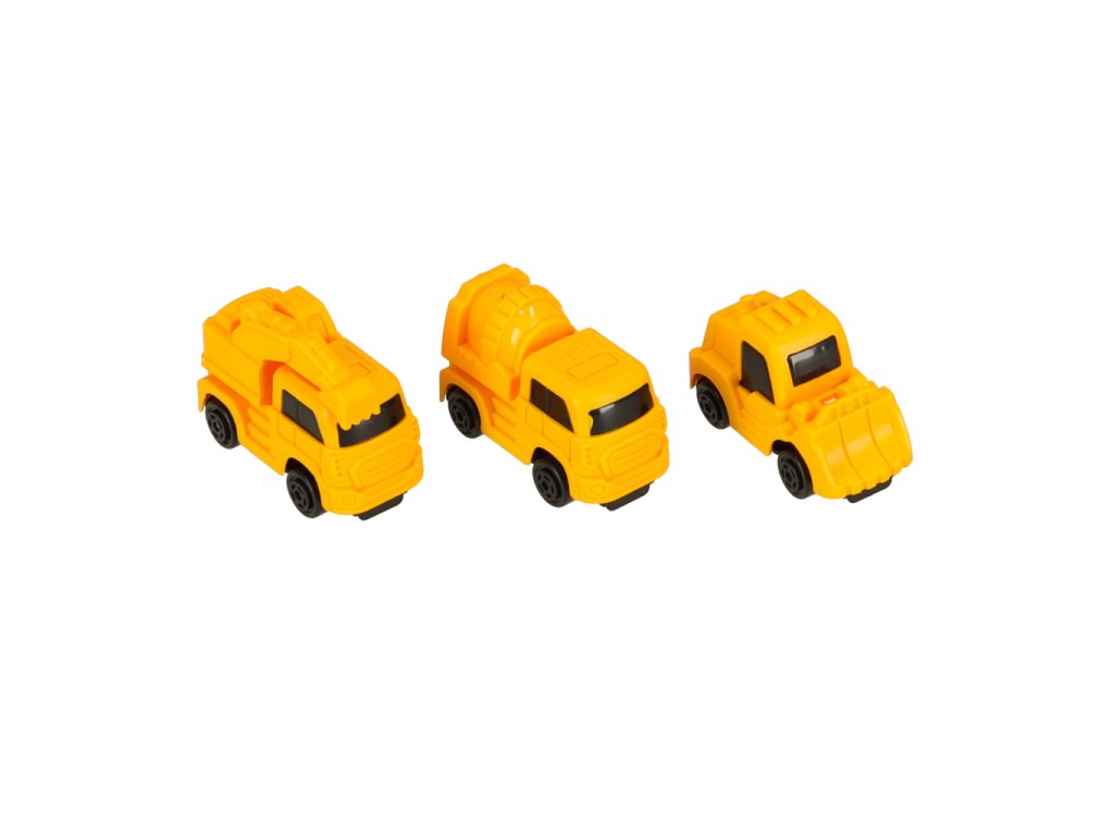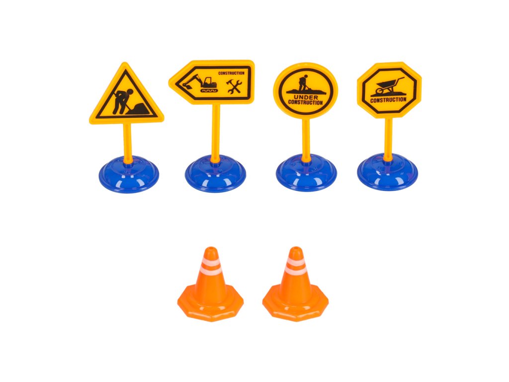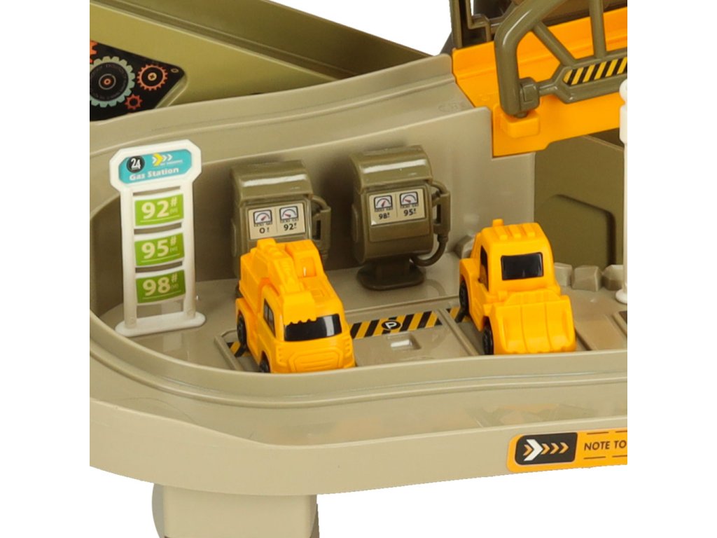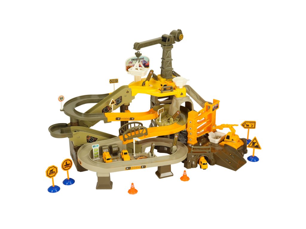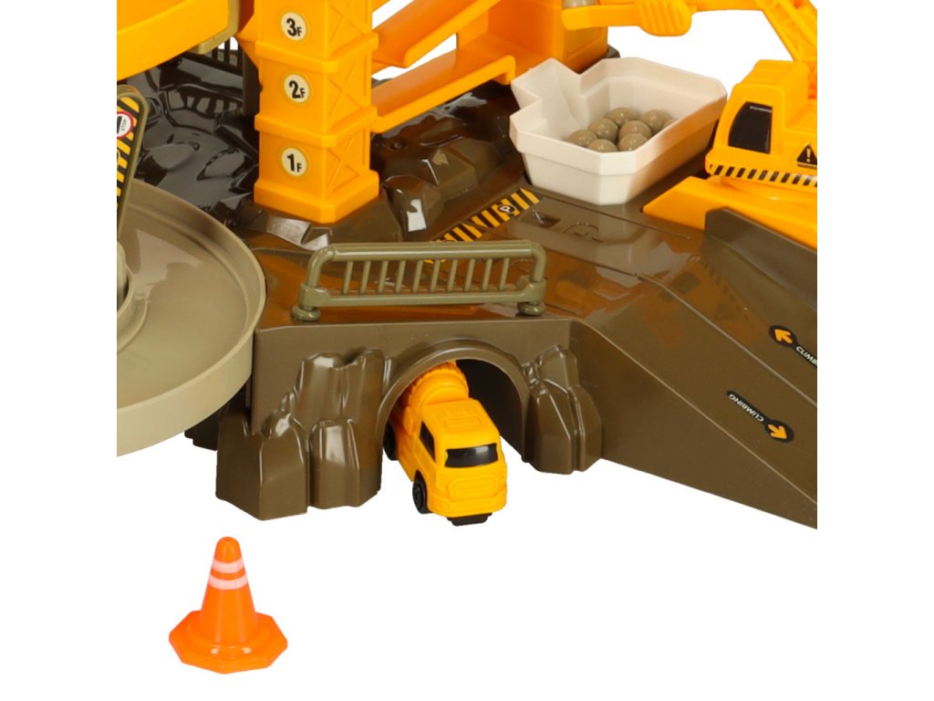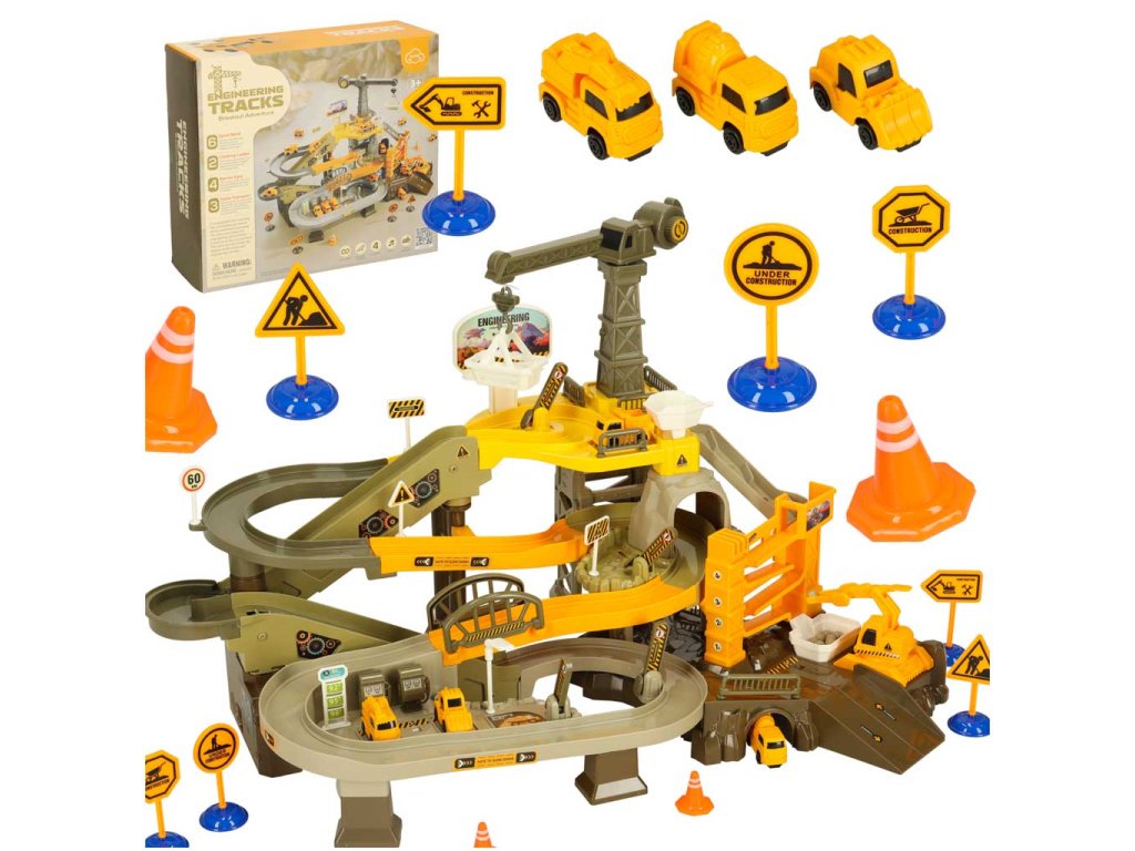 Komplet vsebuje ne le avtomobilčke, temveč tudi druge gradbene elemente vključno z žerjavom. Otrok se tako lahko popolnoma vživi v vlogo nadzornika gradbišča, načrtuje prevoz tovora in nadzoruje potek dela.