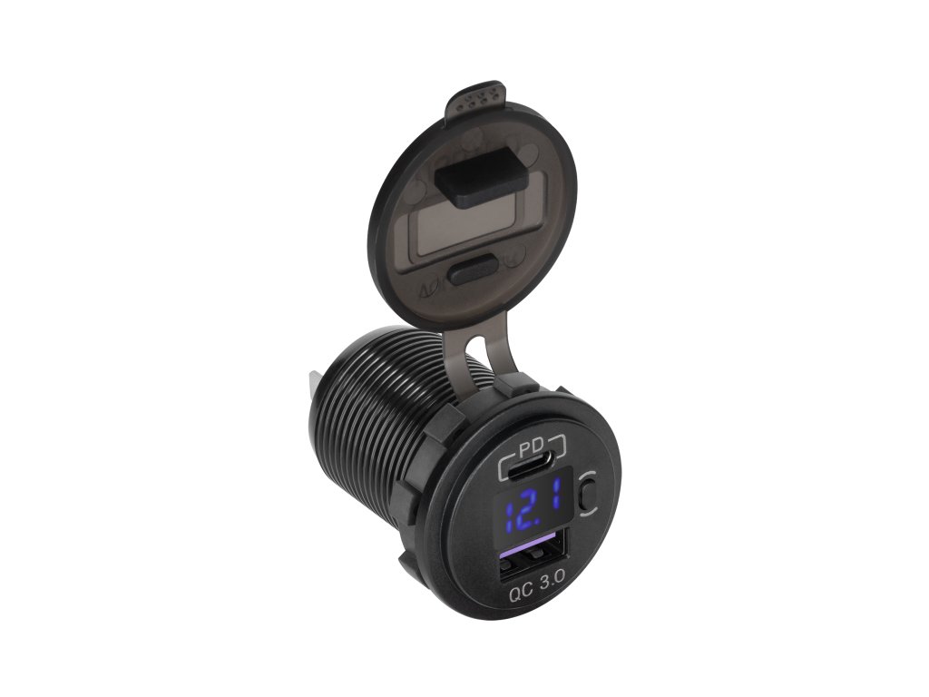Avtomobilski polnilnik USB + USB tipa C s funkcijo Quick Charge, Power Delivery in merilnikom napetosti 48W