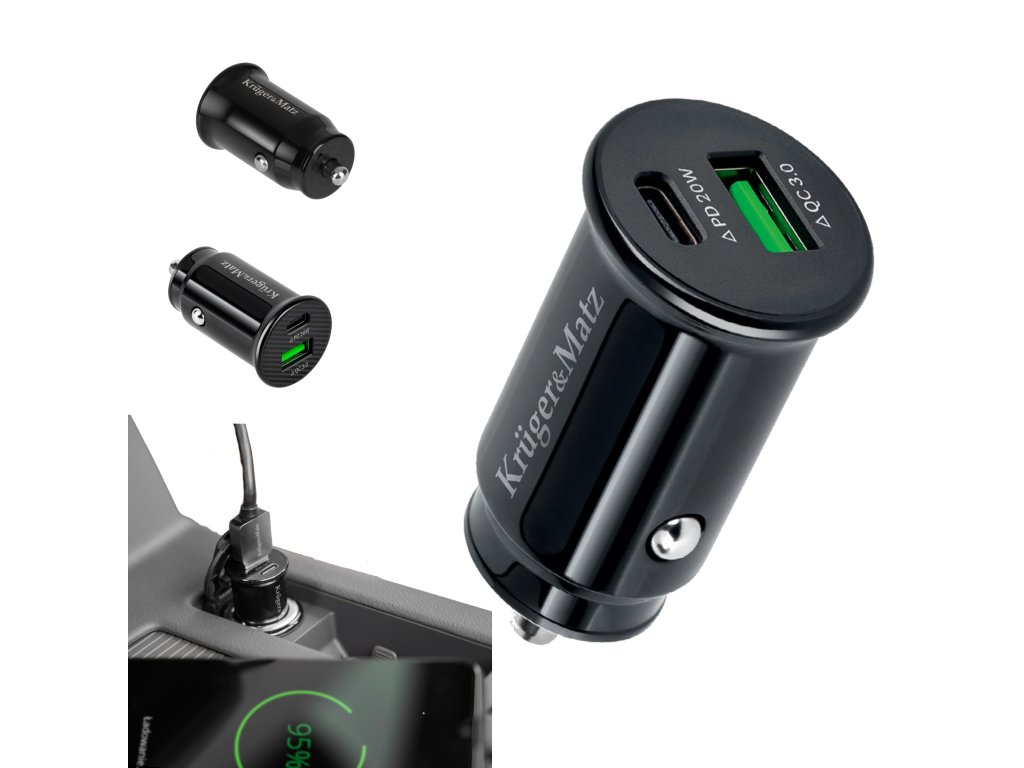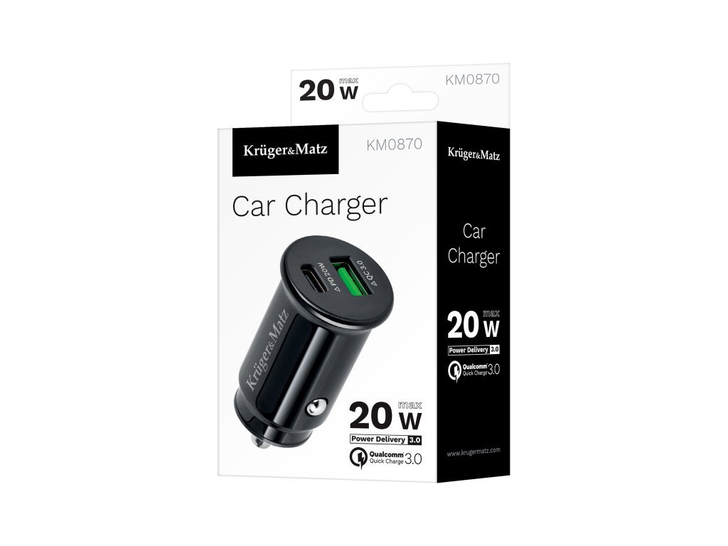 Avtomobilski polnilec Kruger&Matz KM0870 je pripomoček, ki bi moral biti v vsakem avtu. Ta učinkovit model z močjo 20 W je opremljen s priključkoma USB-A in USB-C, kar omogoča sočasno polnjenje dveh naprav.