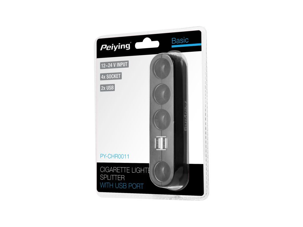 Razdelilnik ponuja štiri vtičnice za vžigalnik, kar omogoča napajanje različnih naprav hkrati, kot so GPS navigacija, video snemalnik ali polnilec za telefon. Dodatna USB vrata z izhodno napetostjo 5 V in tokom 2 A zagotavljajo hitro polnjenje mobilnih naprav.