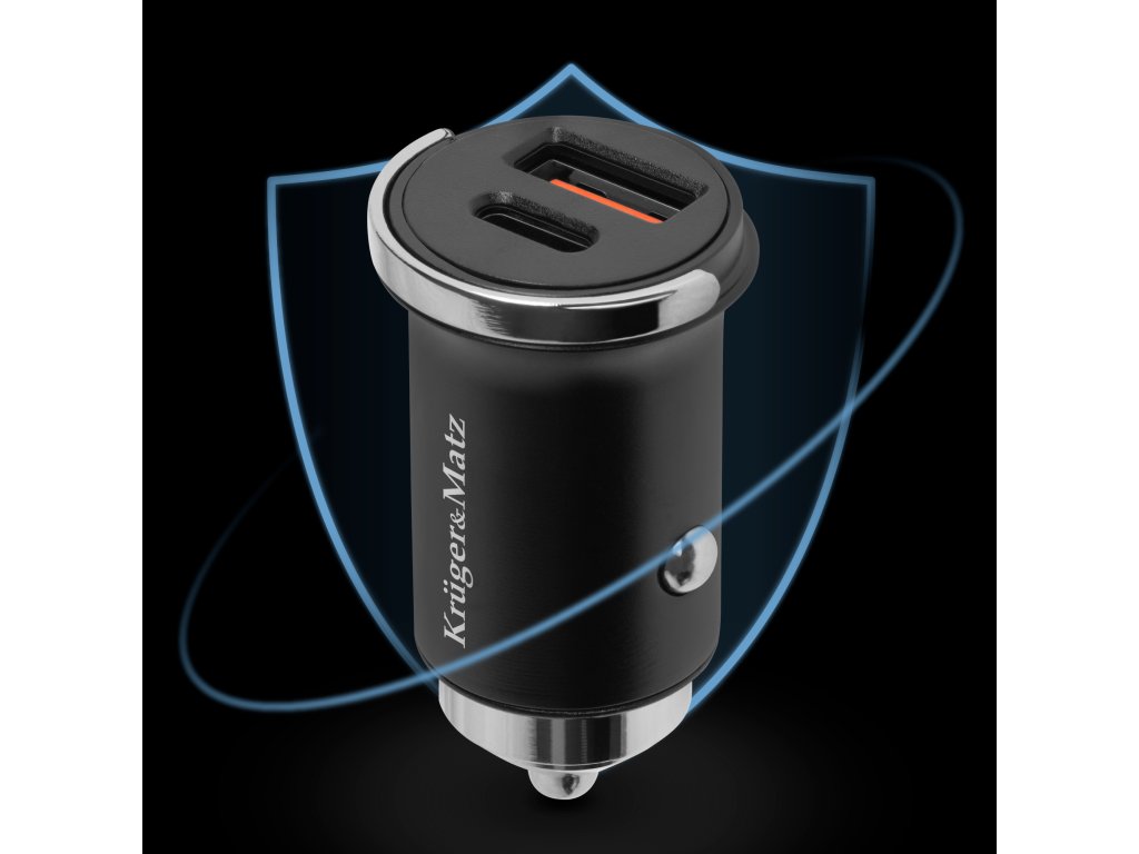 Avto polnilnik Kruger&Matz KM0871 je pripomoček, ki bi moral biti v vsakem avtomobilu. Ta elegantni polnilnik s priključki USB A in USB tipa C z maksimalno močjo 30 W je nujen pripomoček za vsakega voznika, ki ceni zanesljivost in hitrost polnjenja svojih mobilnih naprav.