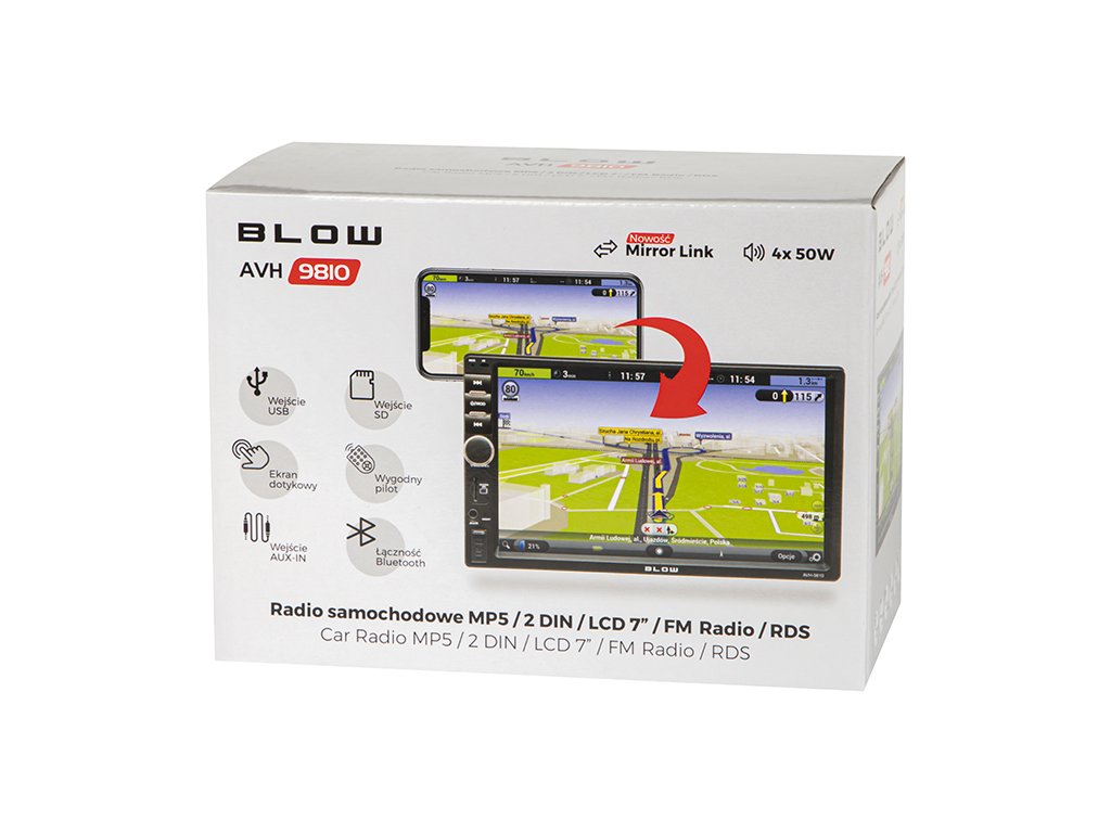 Avtoradio AVH-9810 znamke Blow z multimedijskim sistemom ter 7-palčnim, barvnim in na dotik občutljivim zaslonom omogoča predvajanje FM/AM radio, glasbe, filmov in slik.