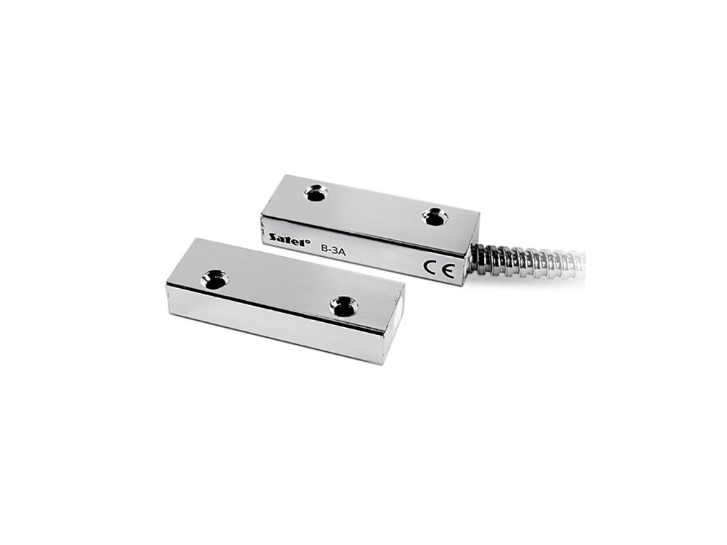 Magnetski detektorji so standardni element obodnega varovanja. Srednje velik, hermetičen bočni magnetski kontakt B-3A v kovinskem ohišju je namenjen za površinsko montažo. Kabli v kovinski zaščitni plasti otežujejo njihovo poškodovanje, tako da je ta detektor idealen za uporabo na mestih, izpostavljenih sabotagem ali mehanskim obremenitvam. Namestitev - pritrjevanje na podlago.