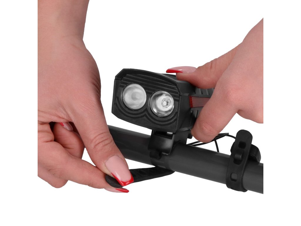 - USB-mikro vtičnica za polnjenje luči zaščitena z gumijastim pokrovom