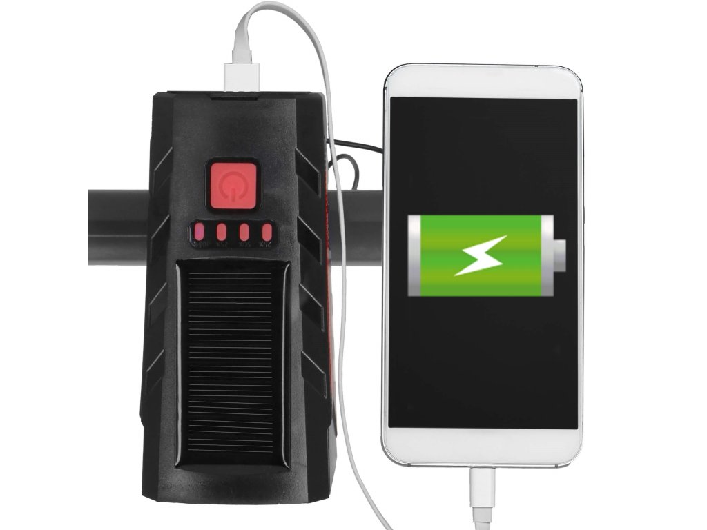 - Sprednja luč napajana s solarnim polnjenjem + možnost USB polnjenja