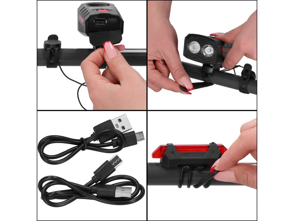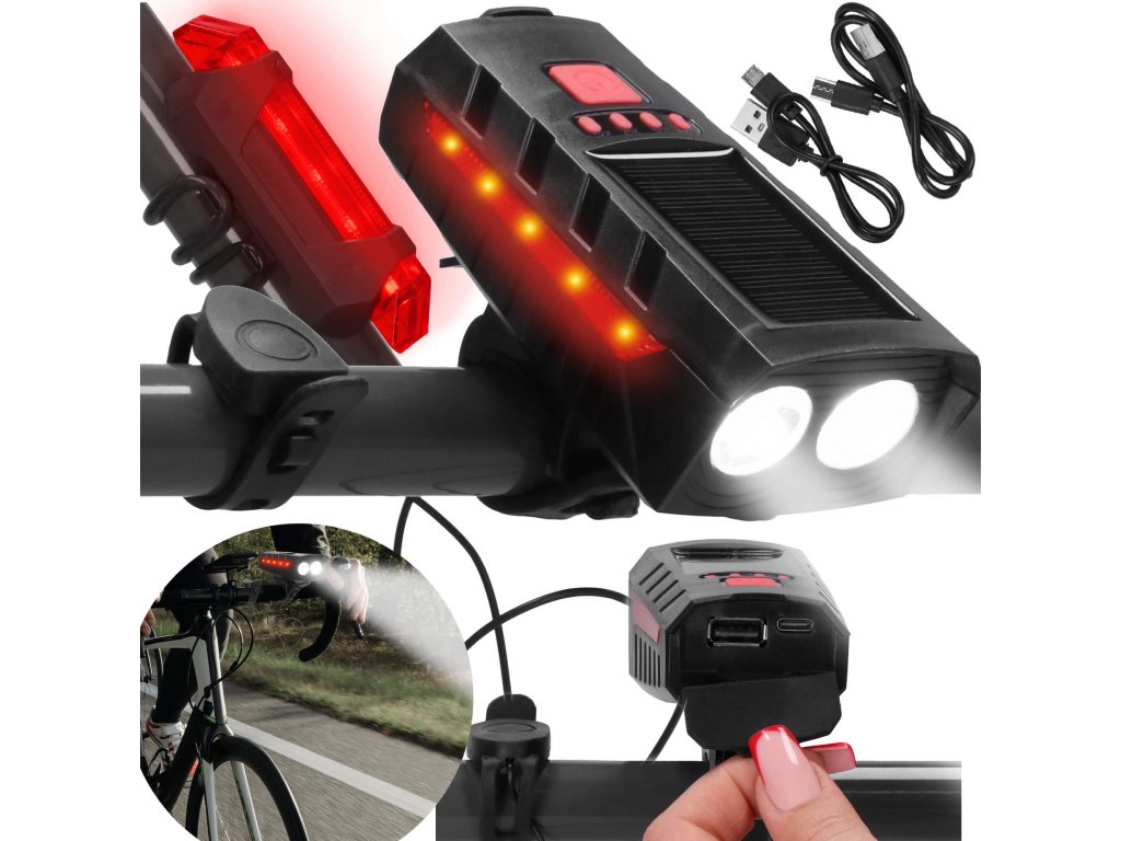 BA0080 SONČNA KOLESARSKA LUČKA USB + ZADNJA LUČKA USB