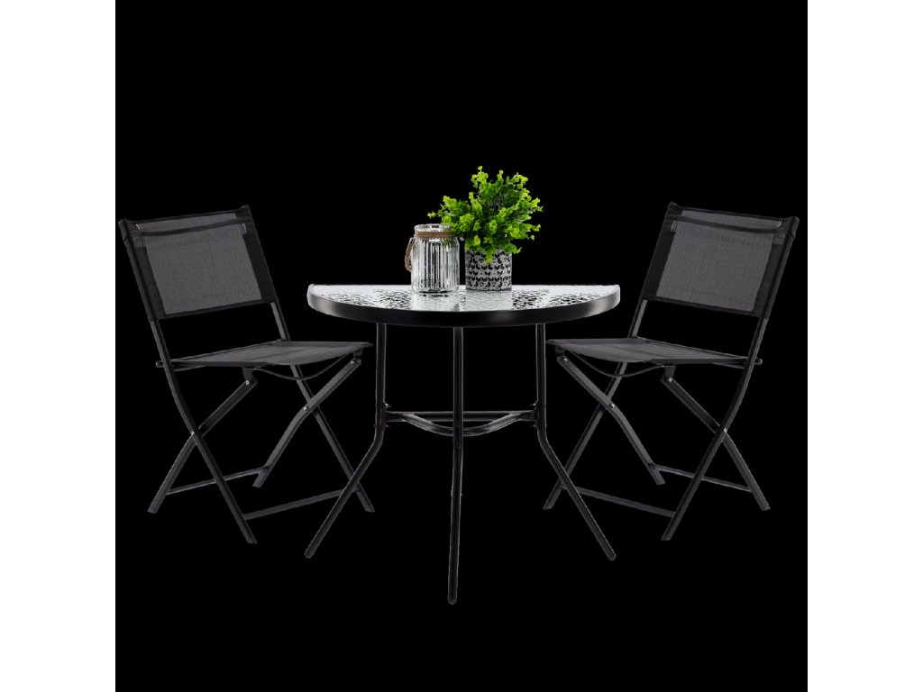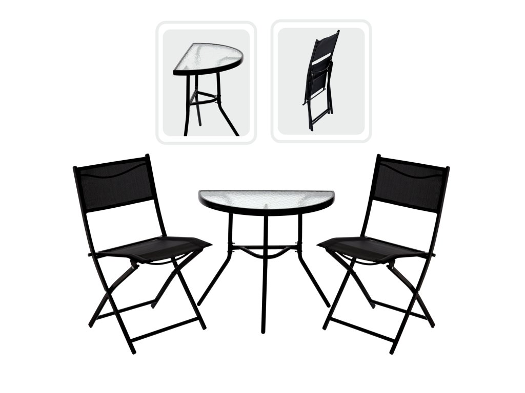 BAKONSKI SET ZA NA TERASO - POLKROGAST DOSTOL + 2 ZLOŽLJIVI STOLI - ČRN *7132