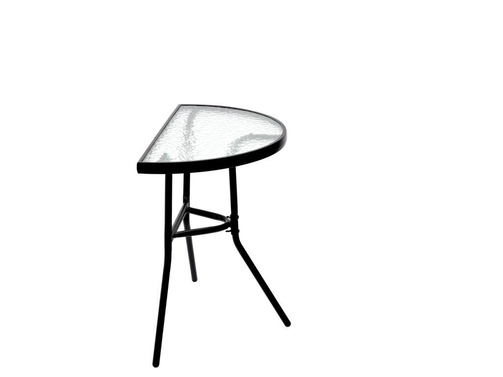 Stilna in funkcionalna nabor balkonskega kalu v sivi barvi. Kompaktna miza tipa "polovička" se odlično prilega na balkon, lahko pa se uporablja tudi na terasi ali v vrtu. Stoli so zložljivi, kar olajša njihovo shranjevanje in prevoz.