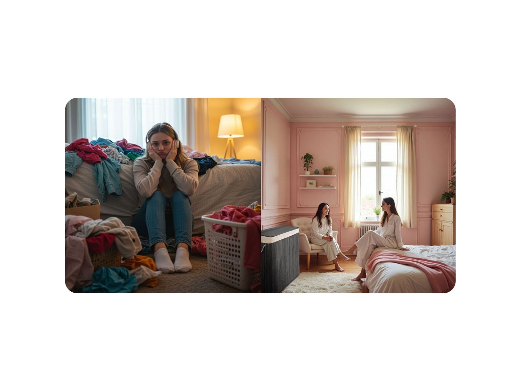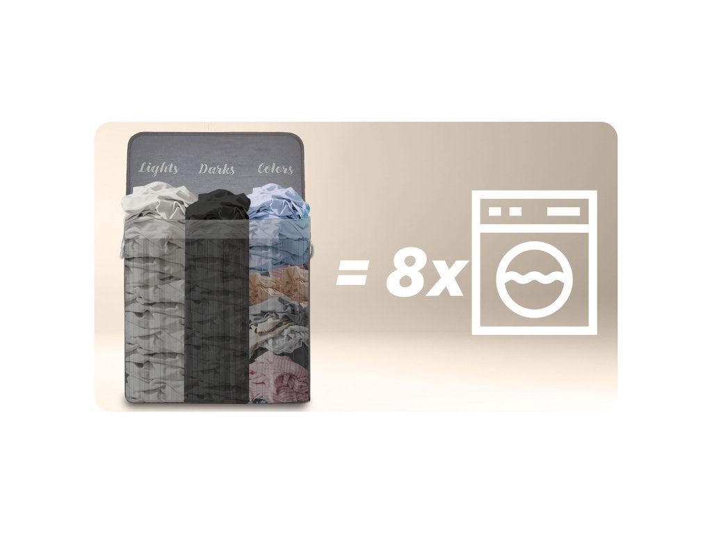 Podloga iz naravnega bombaža spremeni košaro v praktično torbo za pranje. Ko je napolnjena, jo enostavno izvlecite, zaprite in prenesite v pralni stroj – prihranite čas, izognete se neredu in ohranite čistočo.