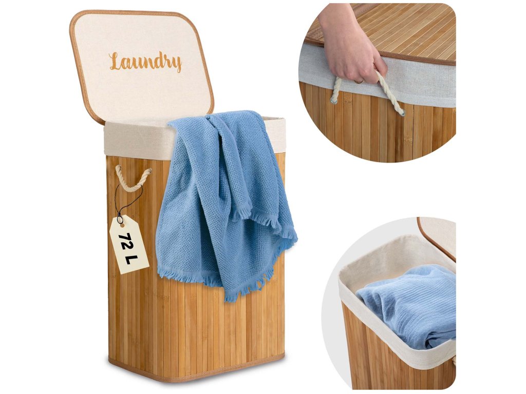 Bambusova košara za perilo s pokrovom 72 l Massido