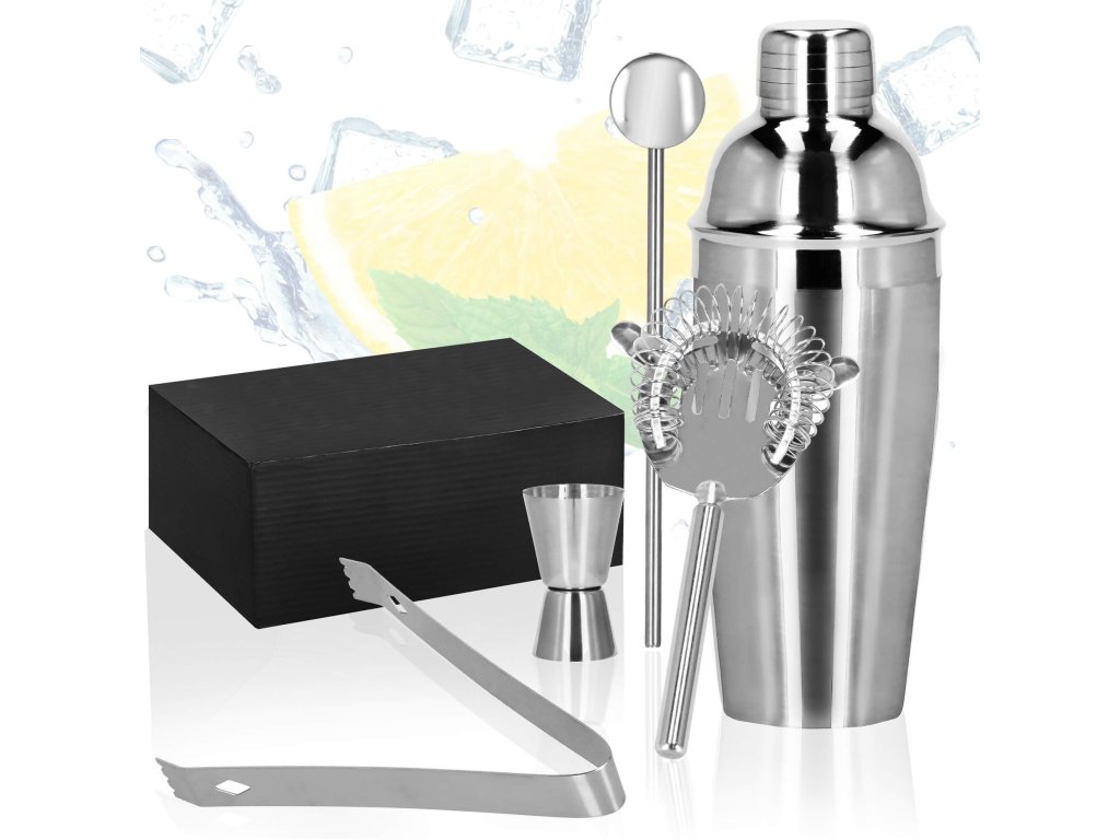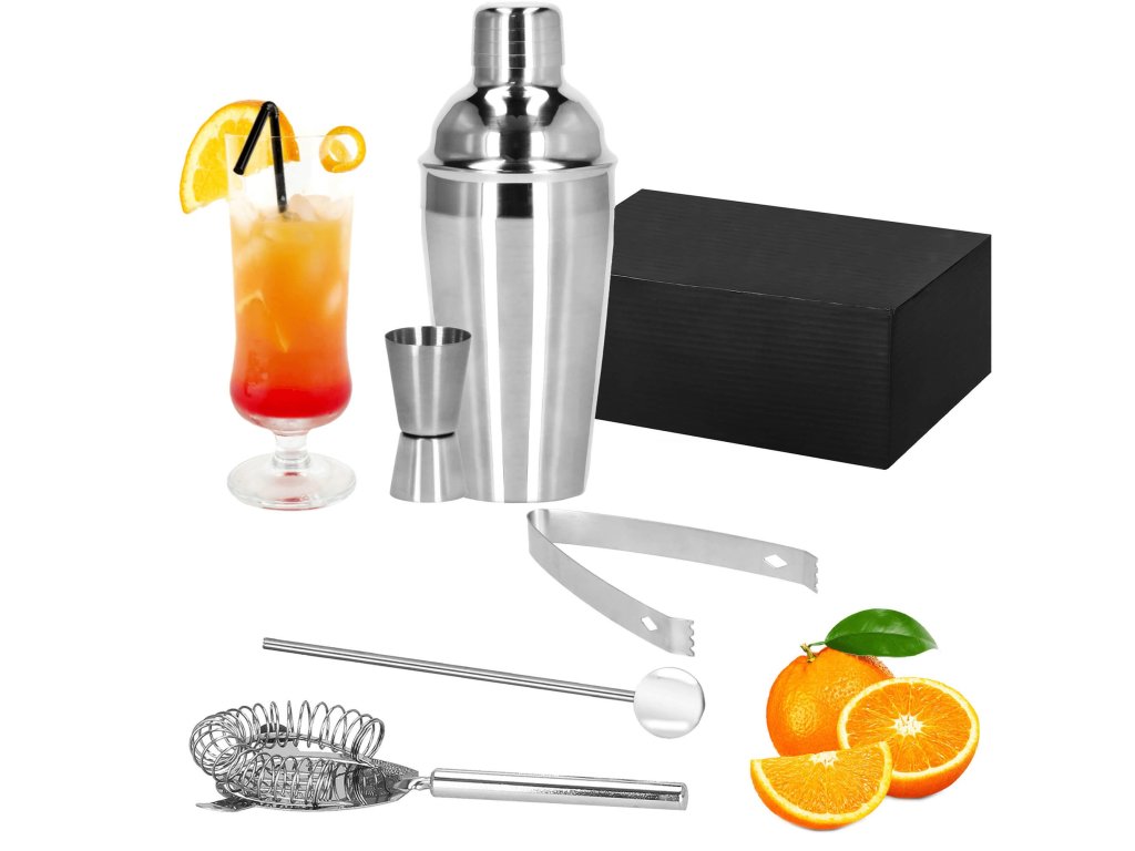 - 1 x šejker (tredelni) - višina: 23 cm / premer polnjenja: 8,5 cm / premer dna kozarca: 6 cm / premer sita: 3,6 cm