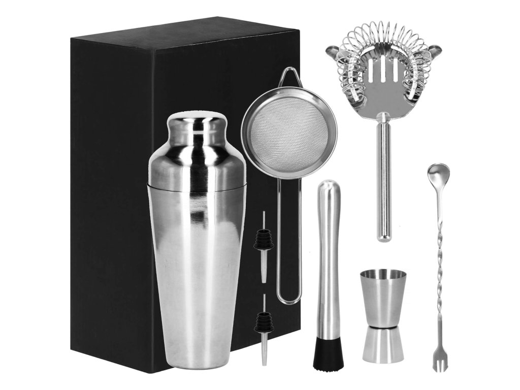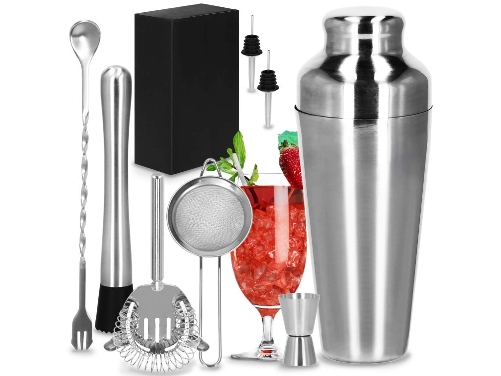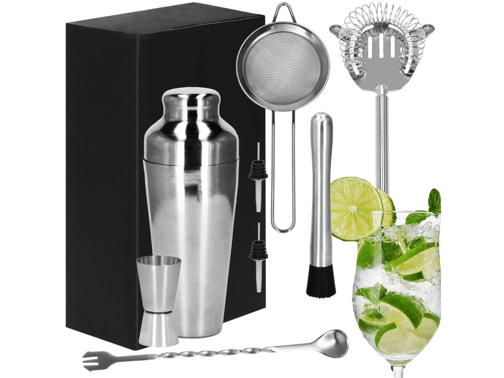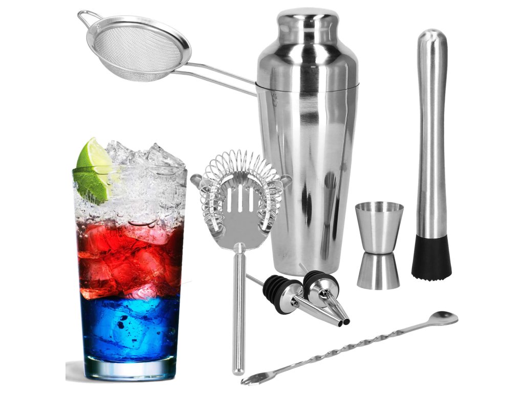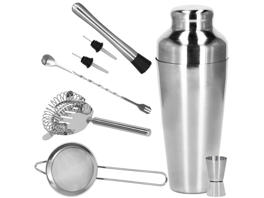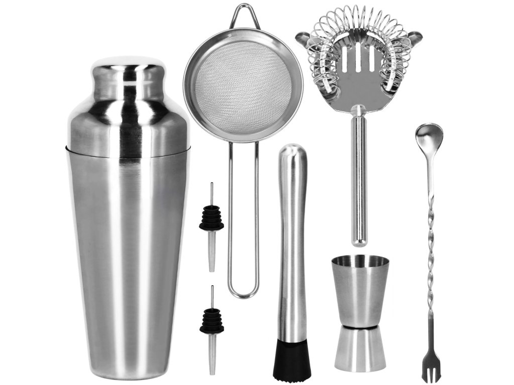 - 1 x shaker (trodelni) - višina: 21 cm / premer vsebnika: 8,5 cm / premer dna kozarca: 5,5 cm