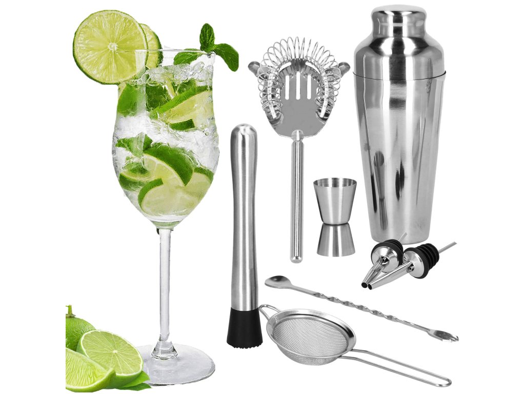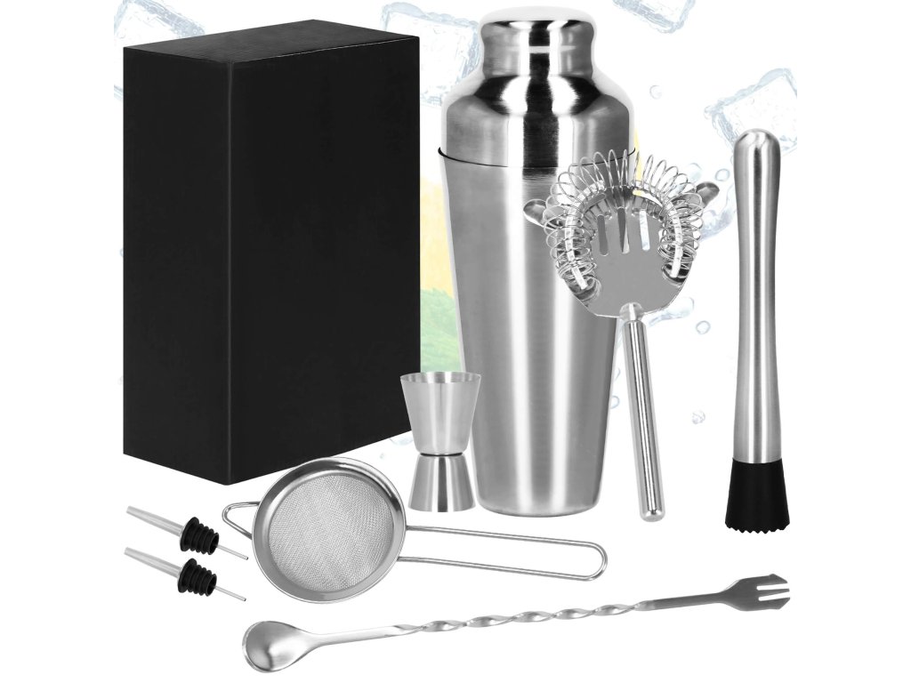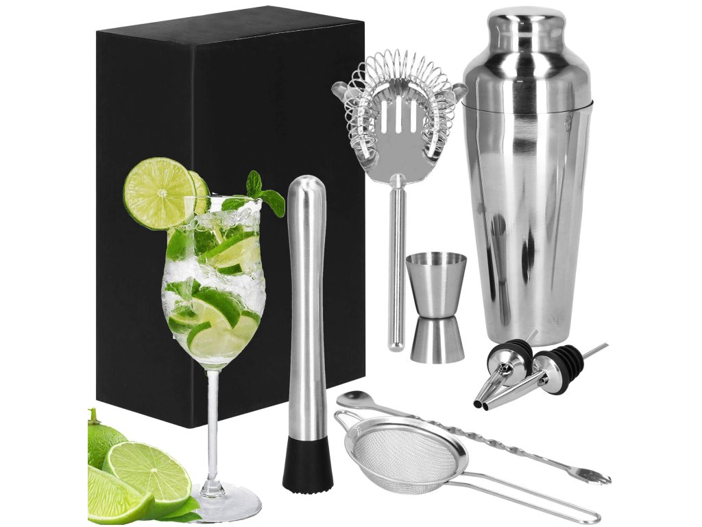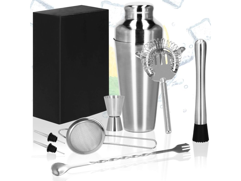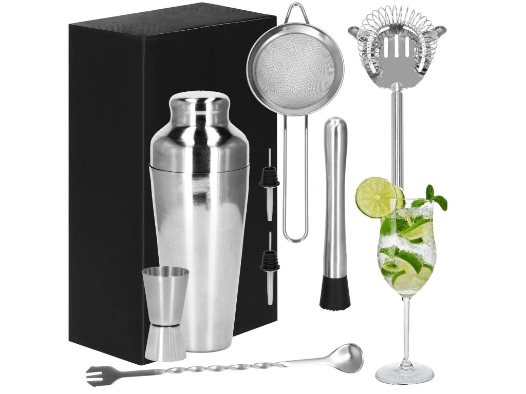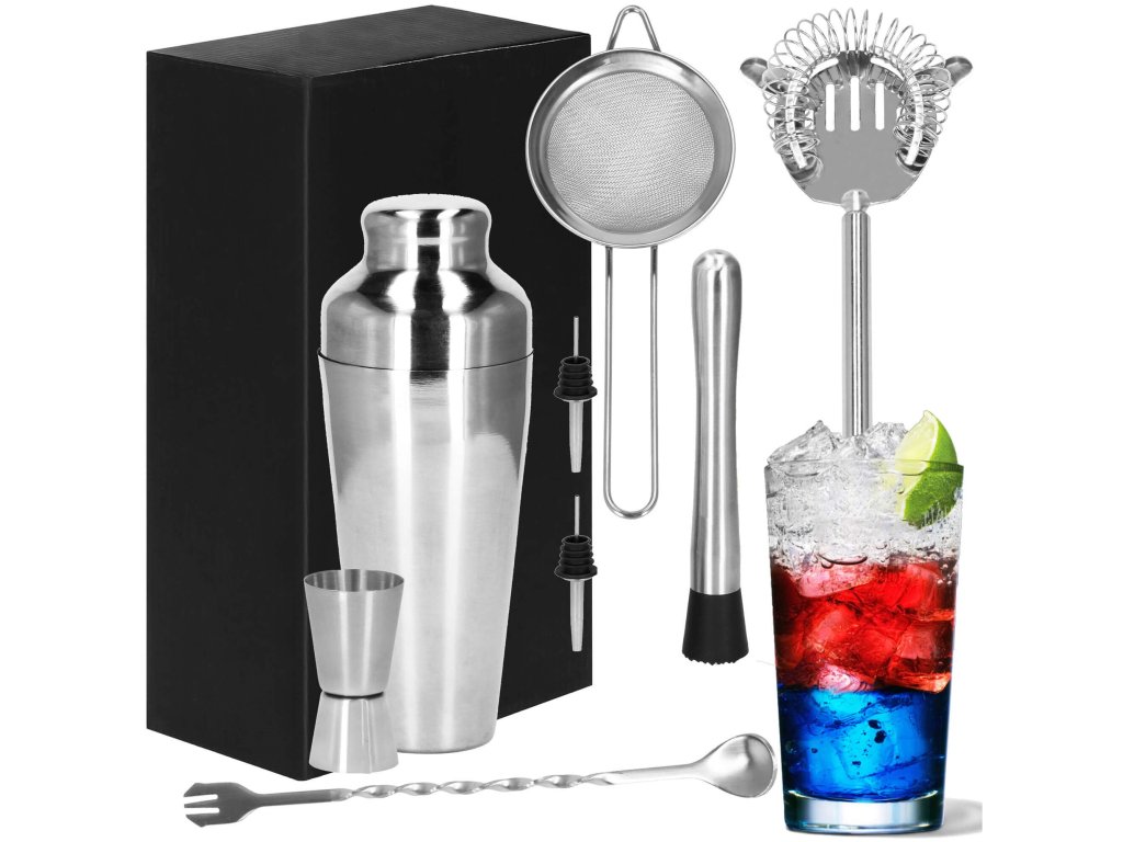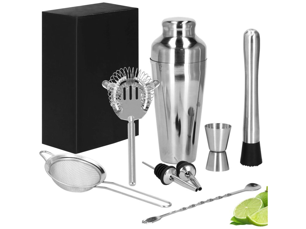 - 1 x shaker (trodelni) - višina: 21 cm / premer vsebnika: 8,5 cm / premer dna kozarca: 5,5 cm