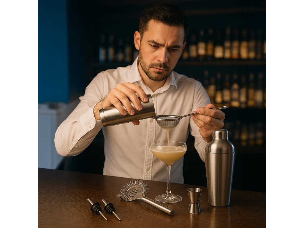 - 1 x barmerski merjolec (jigger) - višina: 6,5 cm, premer: 4 cm in 3,5 cm