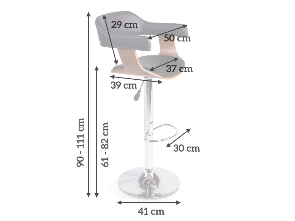 Barski stol Pergo se ujema s sijajem kromiranega podstavka in okolju dodaja pridih elegance.