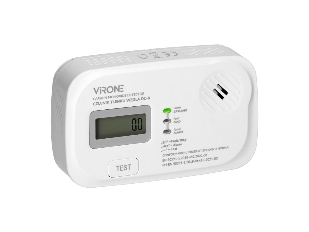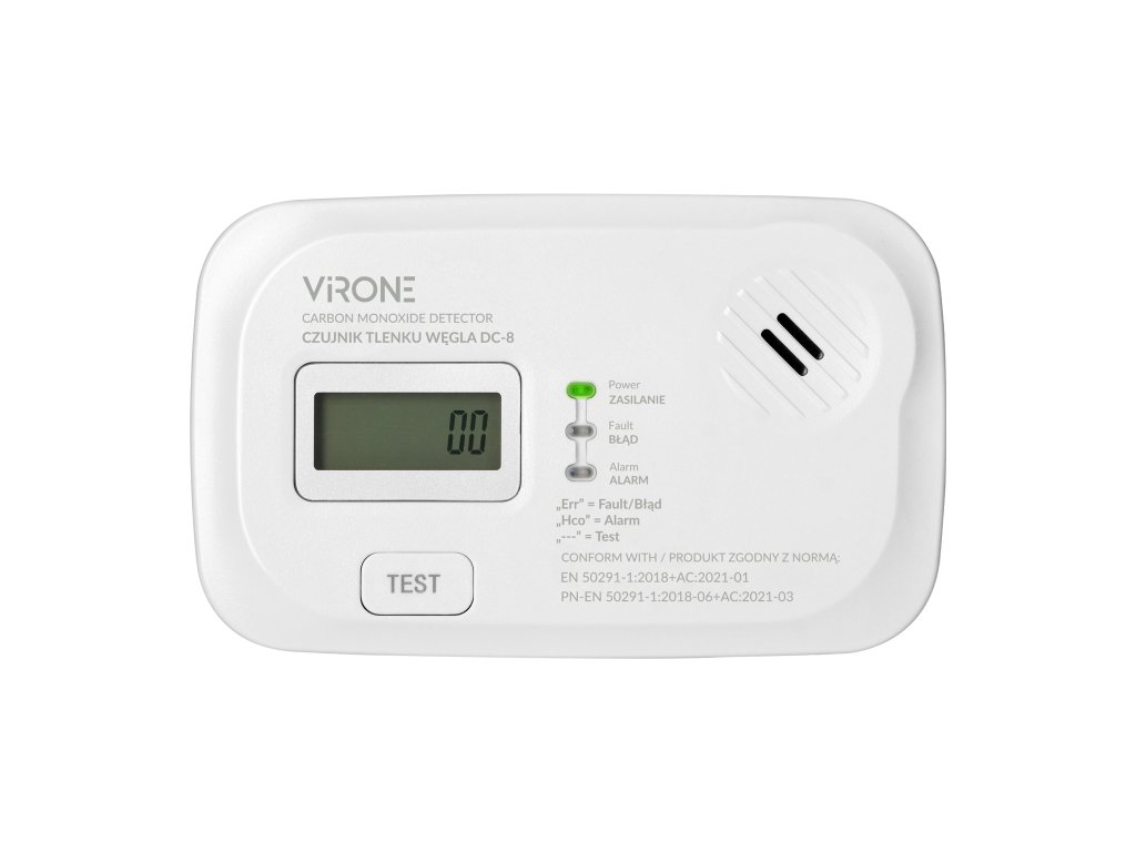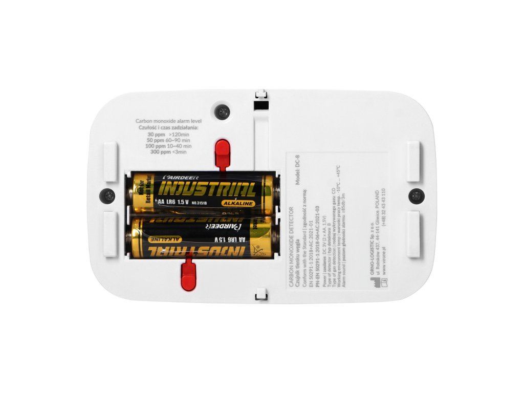 Baterijski dimni detektor je sodobna alarmna naprava, zasnovana za neprekinjeno spremljanje koncentracije ogljikovega monoksida. Prilagojen za uporabo v zaprtih prostorih, zlasti v prostorih, ki so posebej izpostavljeni nevarnostim, ki se lahko pojavijo zaradi okvare ali pomanjkanja ustreznega prezračevanja.Enota ima LCD zaslon, ki prikazuje raven zaznane nevarnosti (ogljikov monoksid), stanje nizke baterije in konec življenjske dobe. Ima vgrajen elektrokemični senzor, ki zelo natančno prikazuje ravni ogljikovega monoksida. Zaslon prav tako omogoča branje informacij o ravneh vlažnosti in temperature brez potrebe po dodatni opremi.