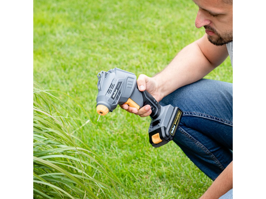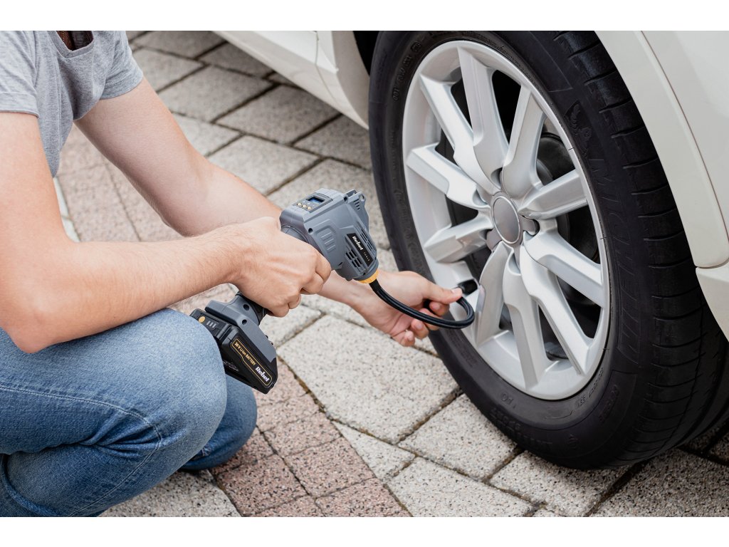 Napihovanje se lahko izvaja na dva načina: ročno, z držanjem stikala, dokler se ne doseže želeni tlak, ali samodejno, z nastavitvijo ustreznega tlaka s pomočjo tipk +/- - kompresor samodejno ustavi napihovanje, ko doseže nastavljeno mejo. Prednost naprave je osvetljen LCD zaslon z digitalnim prikazom, ki bo sproti prikazoval povečevanje tlaka v napihovanem predmetu.