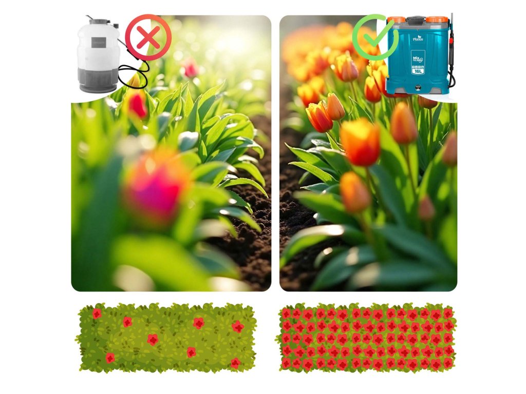 Izberi razpršilec z mešalnikom – garancija enakomerne rasti rastlin! Popolno raztapljanje sredstva in natančno pršenje zagotovita, da vsaka rastlina dobi enak odmerek hranilnih snovi.