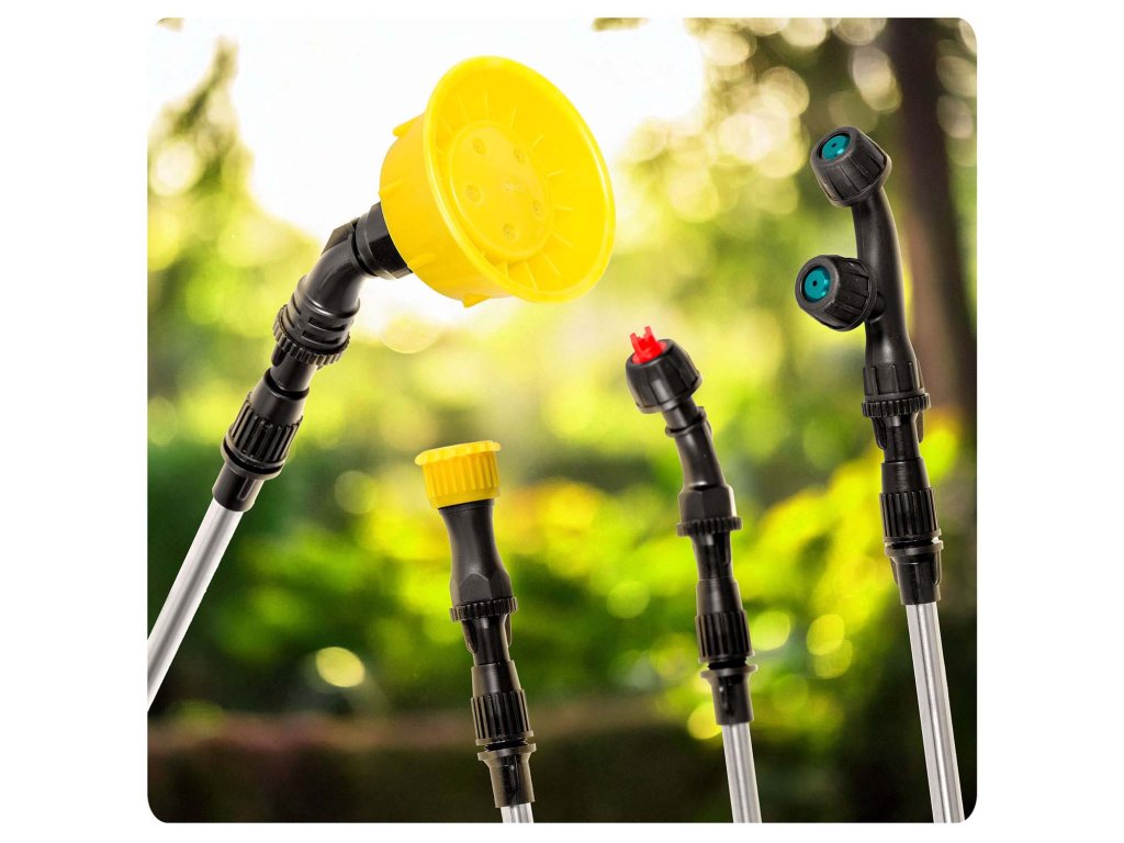 4 različne šobe za večje udobje pri delu- Zalivalna šoba: odlična za nežne rastline, ki potrebujejo subtilno pršenje. Zagotavlja enakomerno razpršitev meglene kapljice.