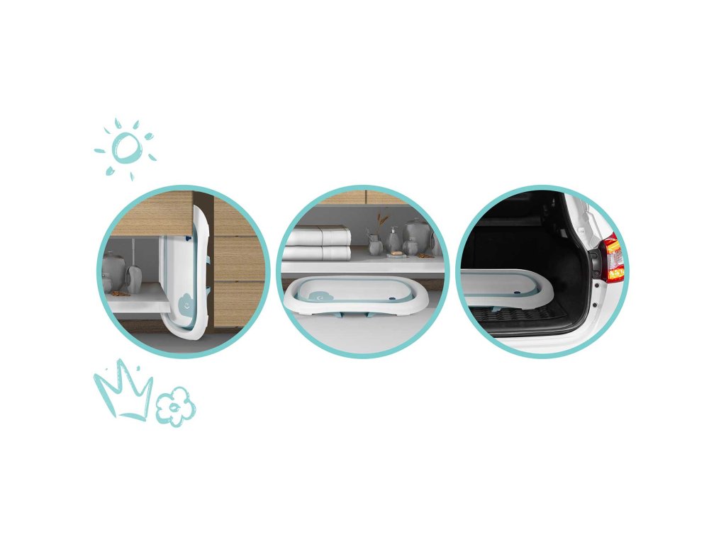 Zaradi možnosti zlaganja kadi jo lahko enostavno vzamete na potovanje ali pospravite v kopalnici. Uporabno za vsakdanjo nego in potovanje.