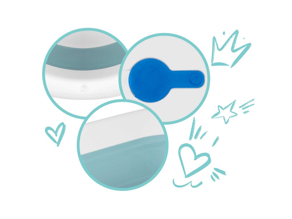 Zaradi zložljivih nog se kad med kopanjem ne zruši in protizdrsne noge zagotovijo varnost na spolzki površini.
