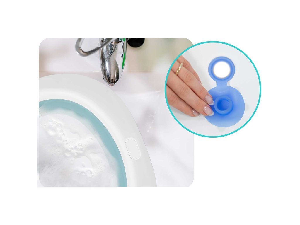 Zahvaljujoč čepu lahko vodo enostavno nalijete neposredno v umivalnik ali kad. To vam pomaga izogniti se dviganju kadi in zmanjšati tveganje razlitja vode.