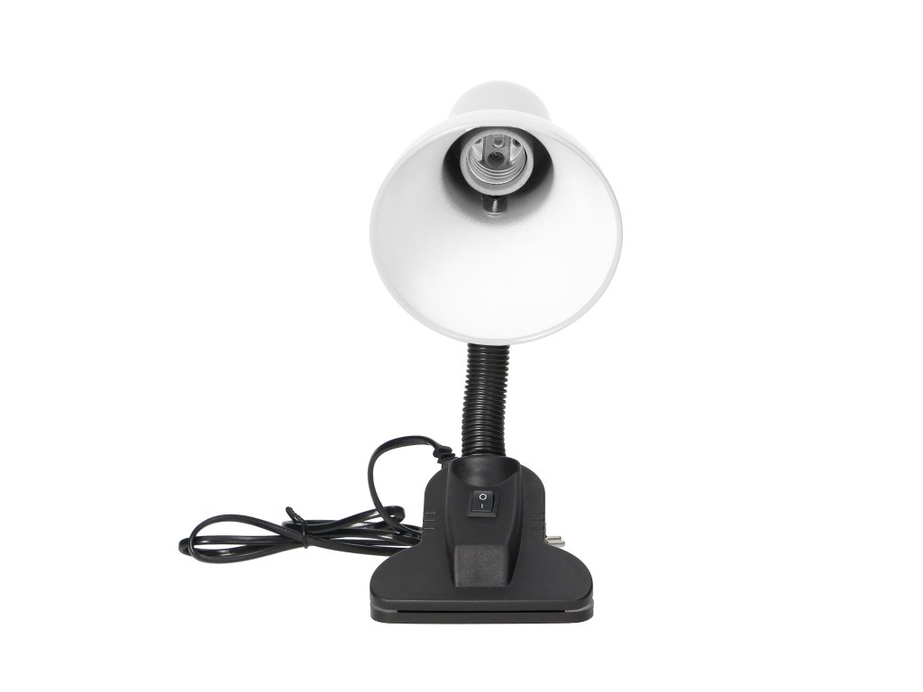 Bela namizna svetilka s sponko in grlom E27