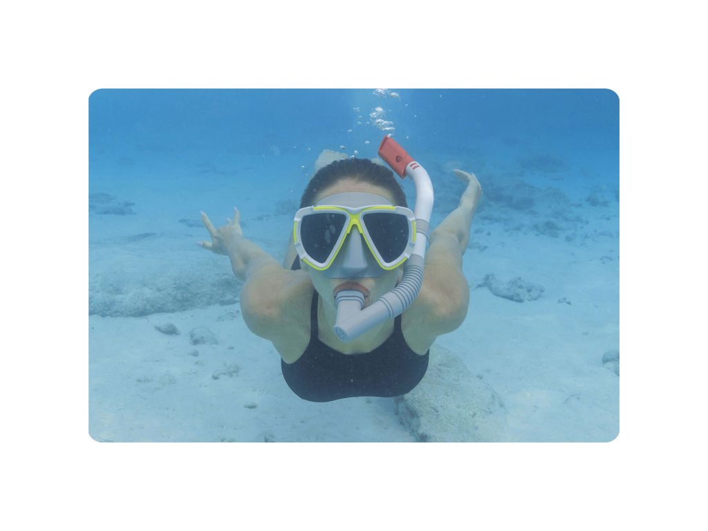 Sedaj lahko potapljaš in uživaš v vodnih dogodivščinah do popolnosti! Maska nudi širok vidni kot, tako da ti nič izpodvodnega sveta ne uide! Poleg tega se odlično prilagodi obliki obraza, kar preprečuje vdor vode.