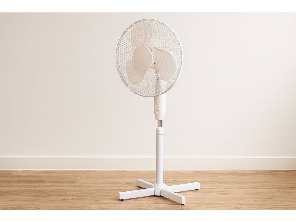 Stojni ventilator z visoko zmogljivostjo, ki zagotavlja učinkovito hlajenje v pisarnah, bivalnih prostorih in drugih prostorih. Opremljen z stabilno osnovo ter regulacijo hitrosti in kota nagiba.