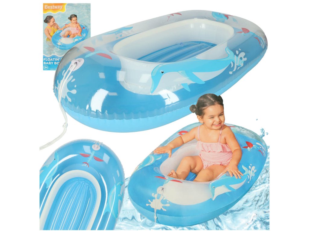 Eden vodilnih proizvajalcev bazenske opreme, podjetje Bestway, je z namenom zagotoviti vašemu otroku udobno zavetje in zabavo v vročih dneh ustvaril napihljivi čoln v modri barvi.
